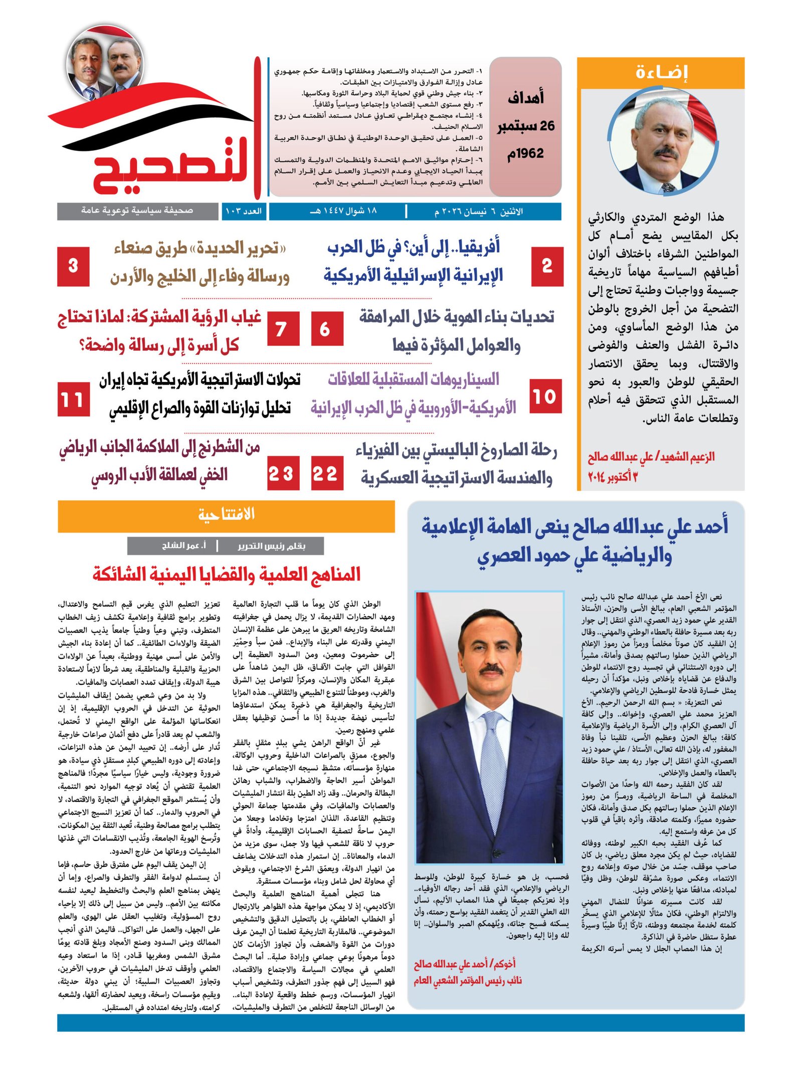 صحيفة التصحيح العدد “مائة وثلاثة”